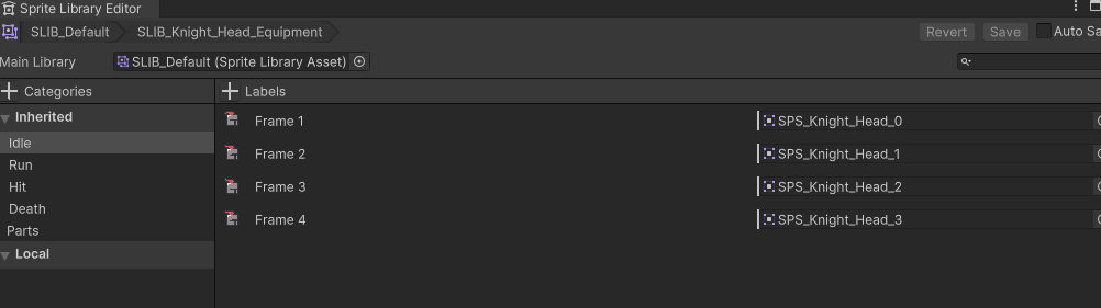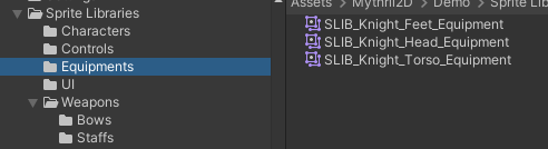 Now all is ready! Let’s make the libraries for the equipments. I added the sprites in the attachment. 9: Make a copy of any of the characters libraries. Change the library to have the sprites, in all the categories.