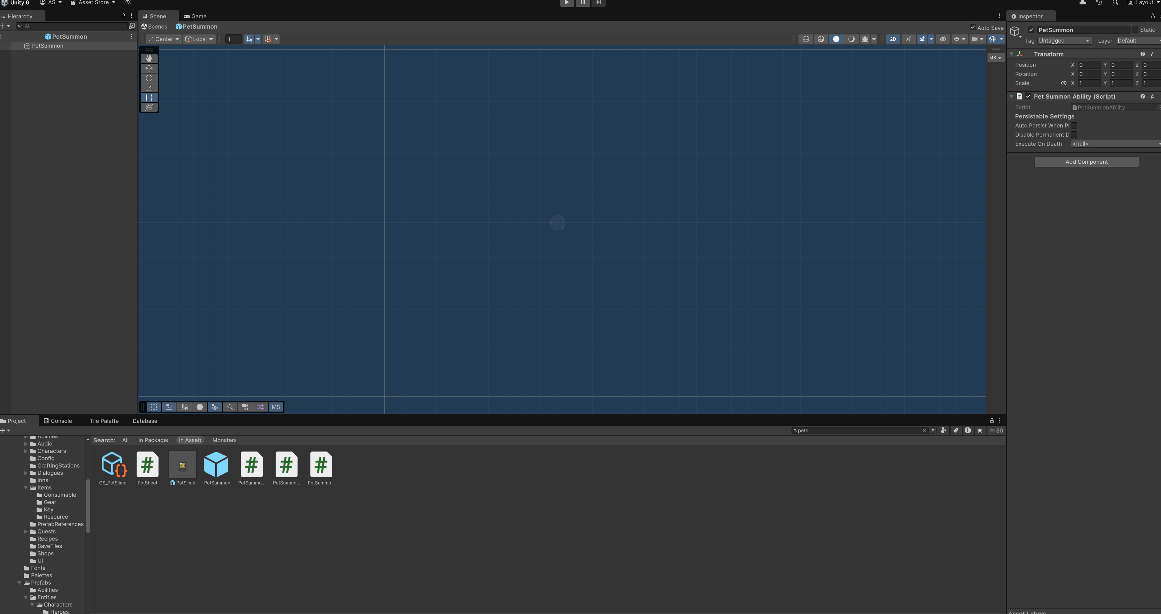 2This add-on adds Pets, as a Passive Ability in Mythril. You must make a new ‘Pet’ Character, as well as make a Pet Passive Ability to use them, there is an example PetSlime that will follow you around like a loyal companion. It will teleport to you, if you get to far away. It is set to invincible, but if you wanted to make pets that could ‘die’ accidentally - there is a respawn mechanic as well. It will follow you through teleporters/scenes, etc…