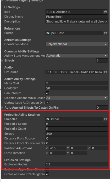 Include the following after [Header(“Projectile Ability Settings”)]: